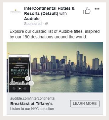 Another brand, another partnership. For InterContinental's partnership with Audible, I did a lot of social writing (and book pairing).
